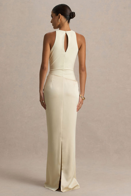 Akari | Champagne High-Neck Maxi Dress With Satin Skirt