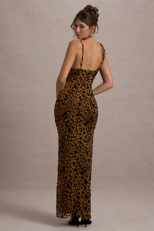 • Yasmin | Leopard Print Velvet Strappy Maxi Dress With Bow