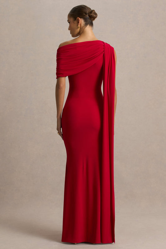 Zendaya | Red Asymmetric-Neck Fishtail Maxi Dress With Cape Detail