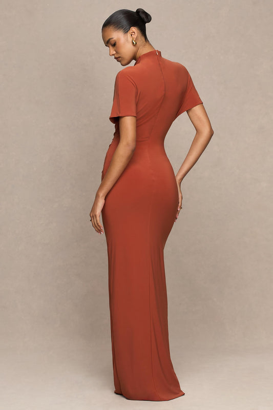 Arlena | Red High-Neck Wrapped Maxi Dress