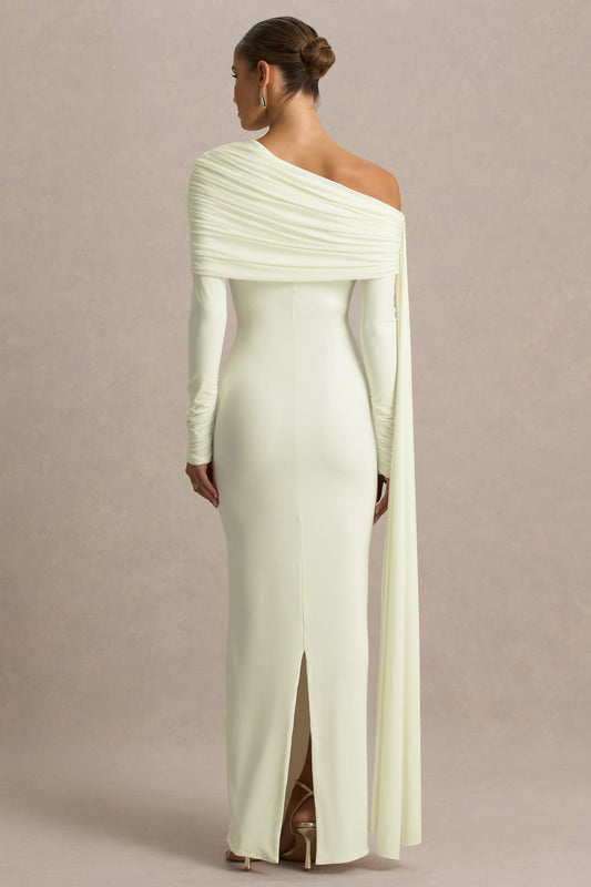 Octavia | Cream Bardot-Neck Maxi Dress With Sash And Ruched Detailing