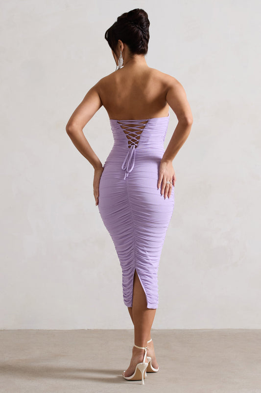 • Nylah | Lilac Ruched Corset Bodycon Midi Dress