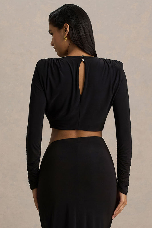 Fluxy | Black Long-Sleeved Crop-Top With Ruched Detailing
