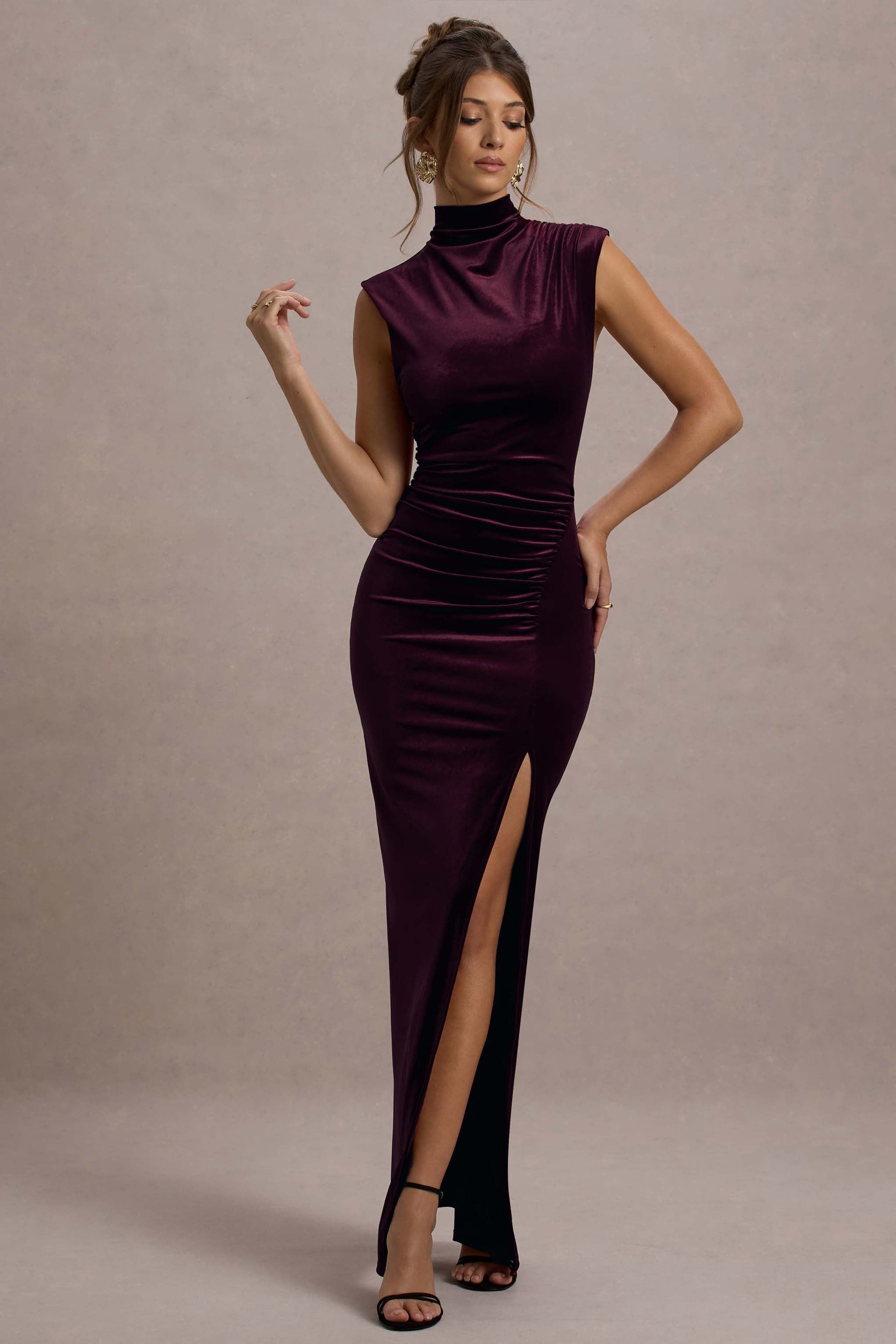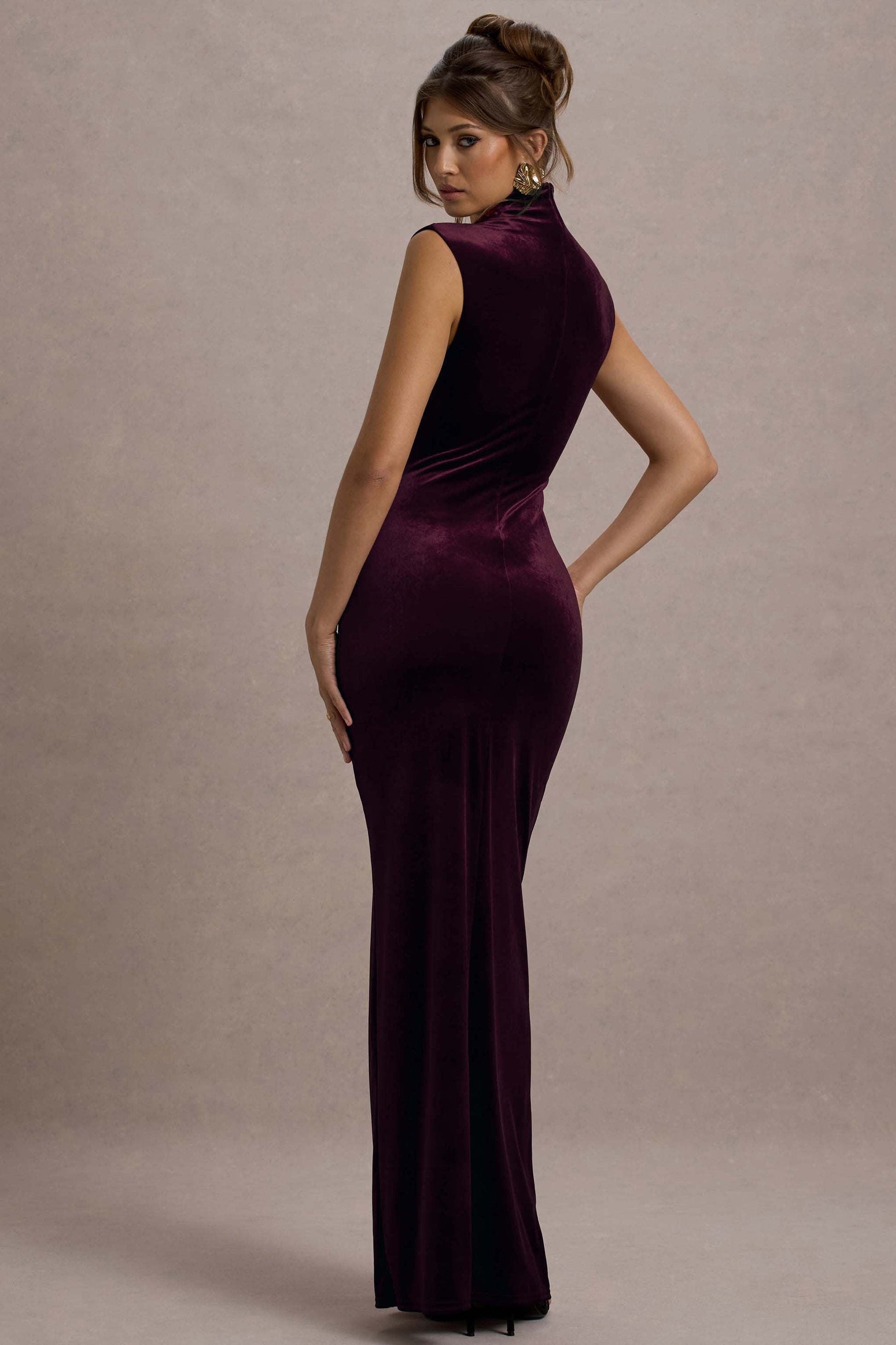 Abilene | Port Velvet High-Neck Split Maxi Dress
