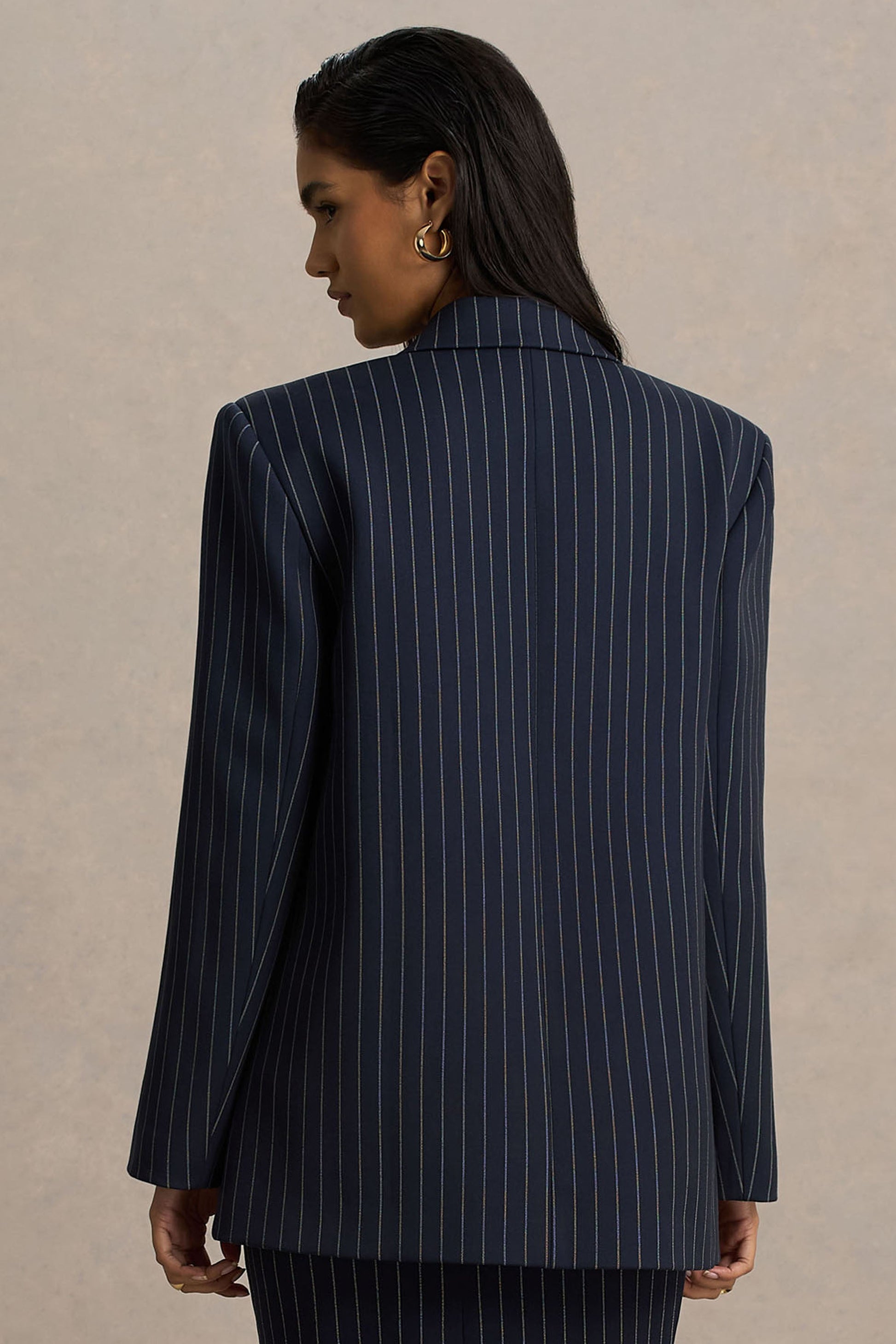 Alana | Navy Pinstripe Plunge-Neck Tailored Blazer