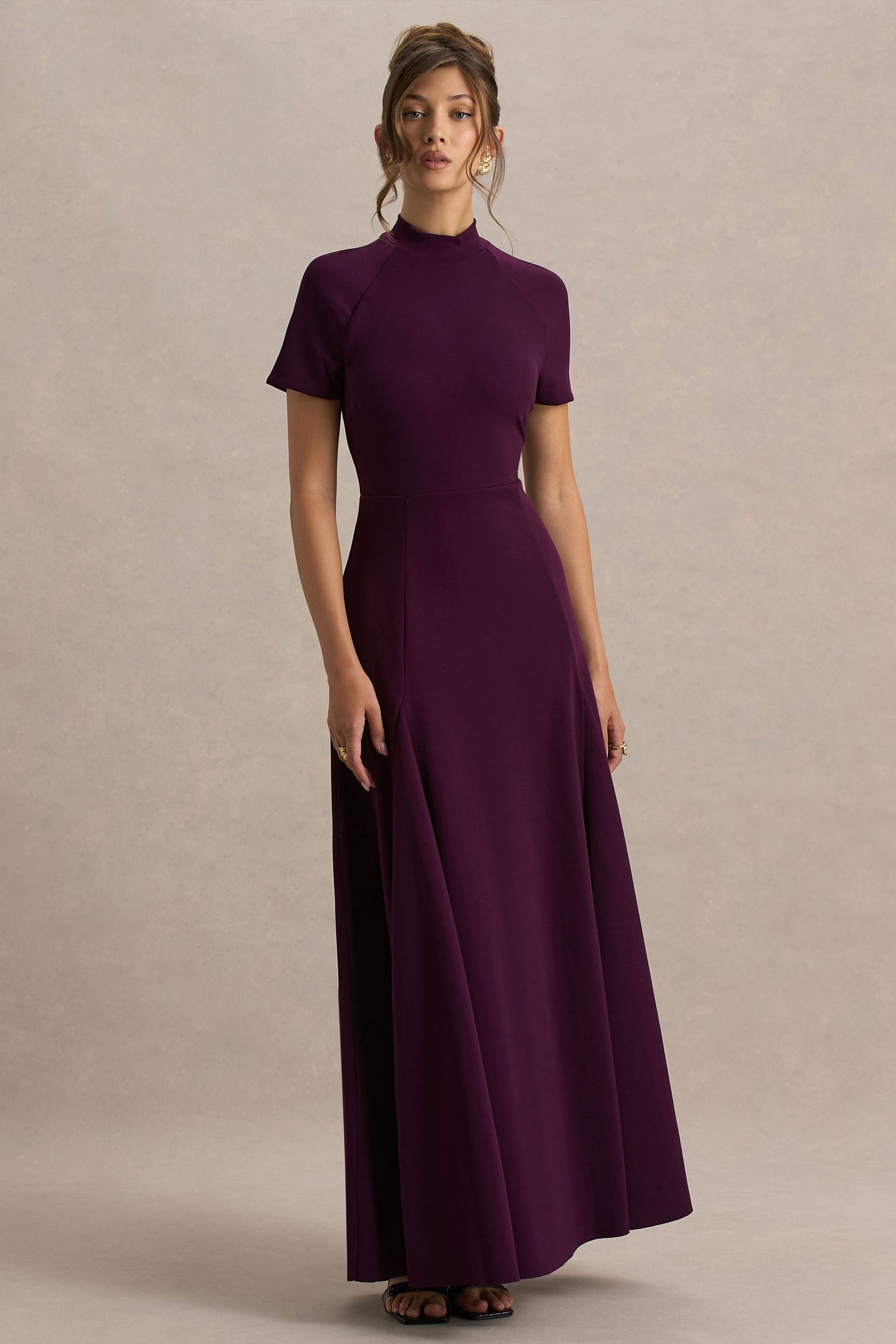 Alea | Burgundy High-Neck Short-Sleeve Maxi Dress