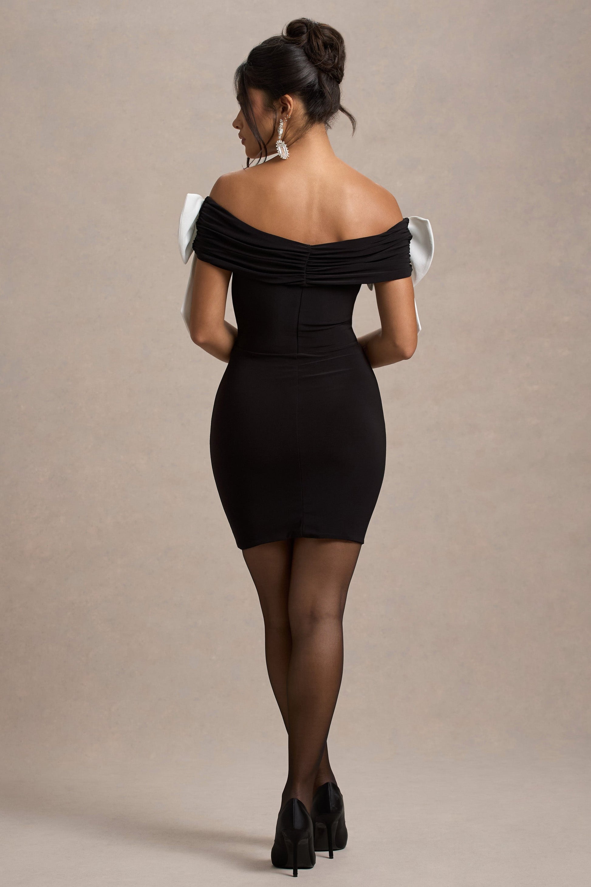 Every wardrobe needs a timeless LBD like Analeigh. Made for special occasions, this black mini arrives in a bodycon silhouette of our dual-layered jersey boasting a bardot neckline and eye-catching bows. The perfect birthday dress, elevate yours further with some sparkling accents like Livia.