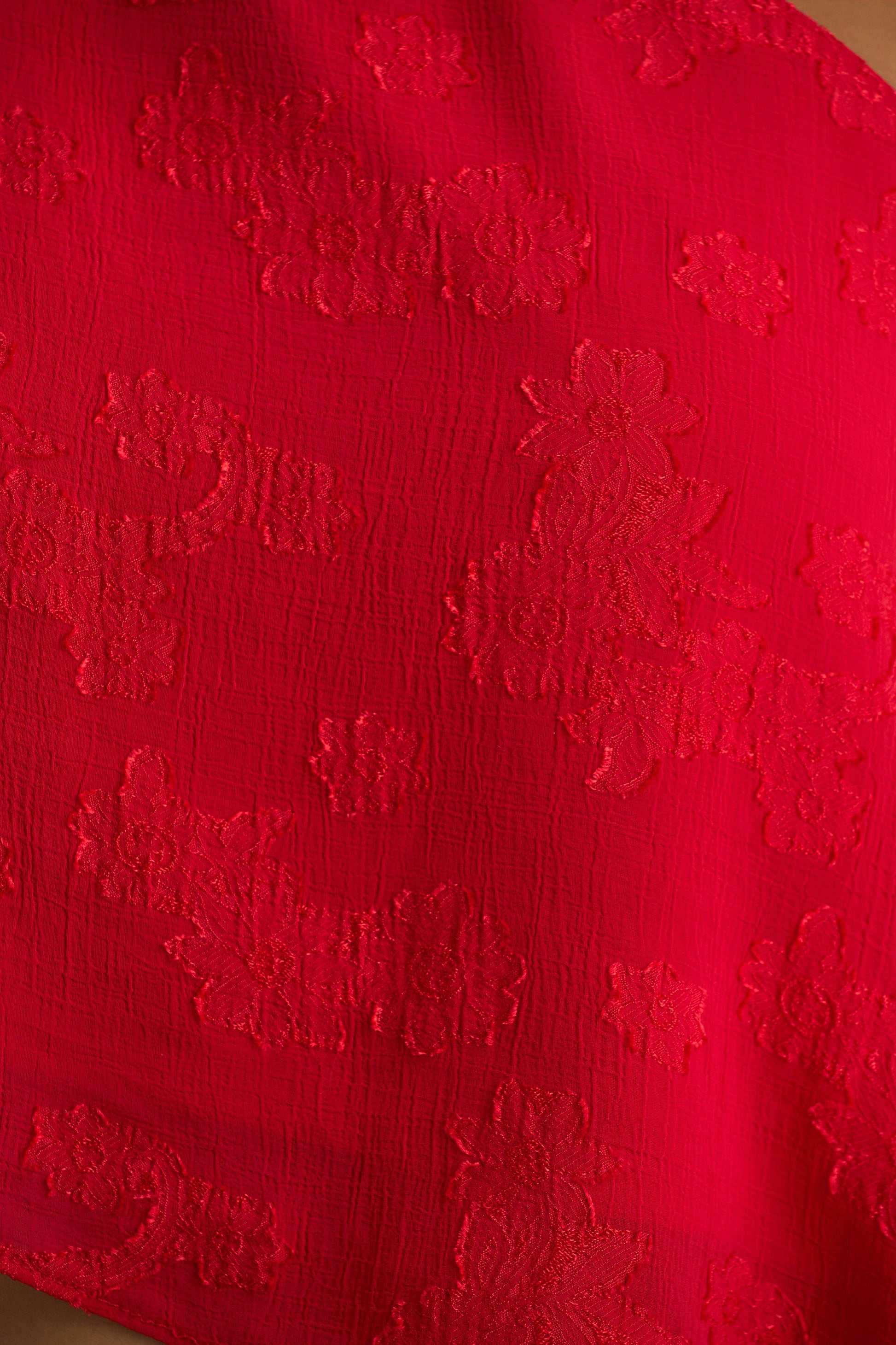 Aruba | Red Satin Devore Asymmetric Long-Sleeve Crop Top