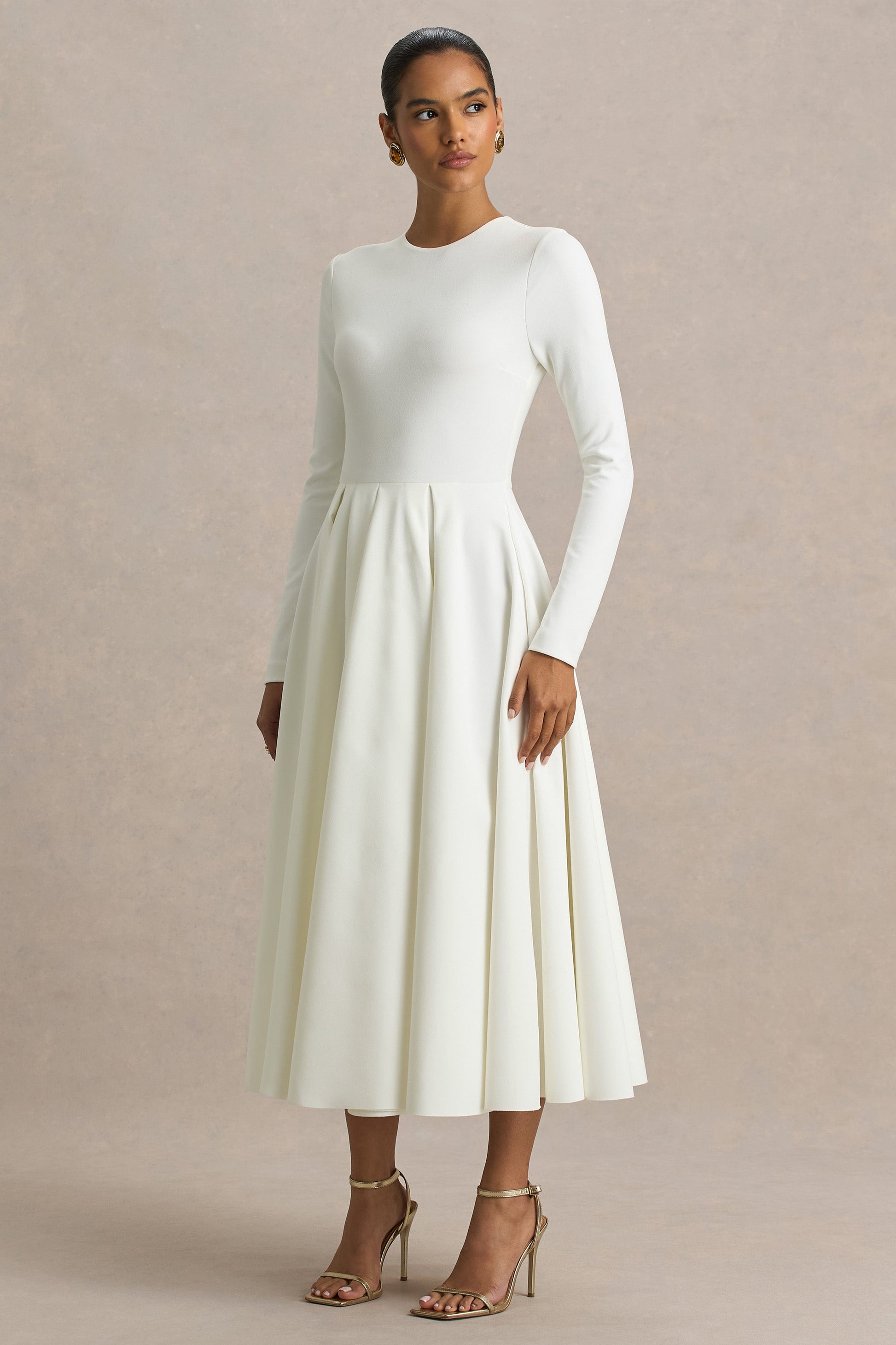 Bellamy | Cream Crew-Neck Long Sleeve Midi Dress