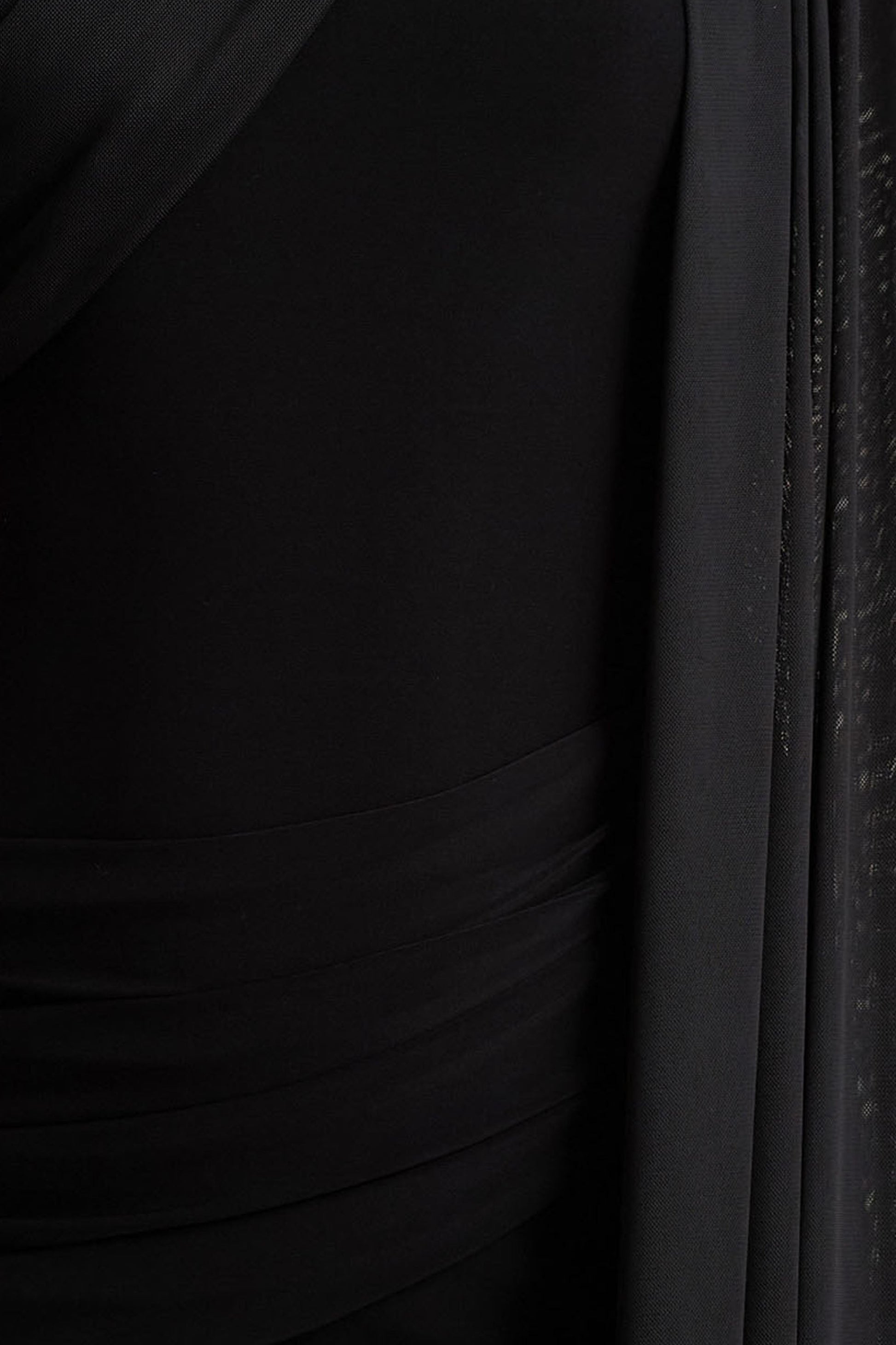Step into effortless elegance with Brenda, a maxi that combines classic sophistication with a modern twist. Crafted from our premium stretch jersey and delicate mesh, this black hued dress offers a flattering silhouette that moves gracefully with you. Featuring a timeless round neckline, a dramatic mesh-cape sleeve in sheer mesh, and a sash detail that adds subtle definition, Brenda is beautifully finished with ruched detailing to enhance your curves. Perfect for making a statement at any special occasion.