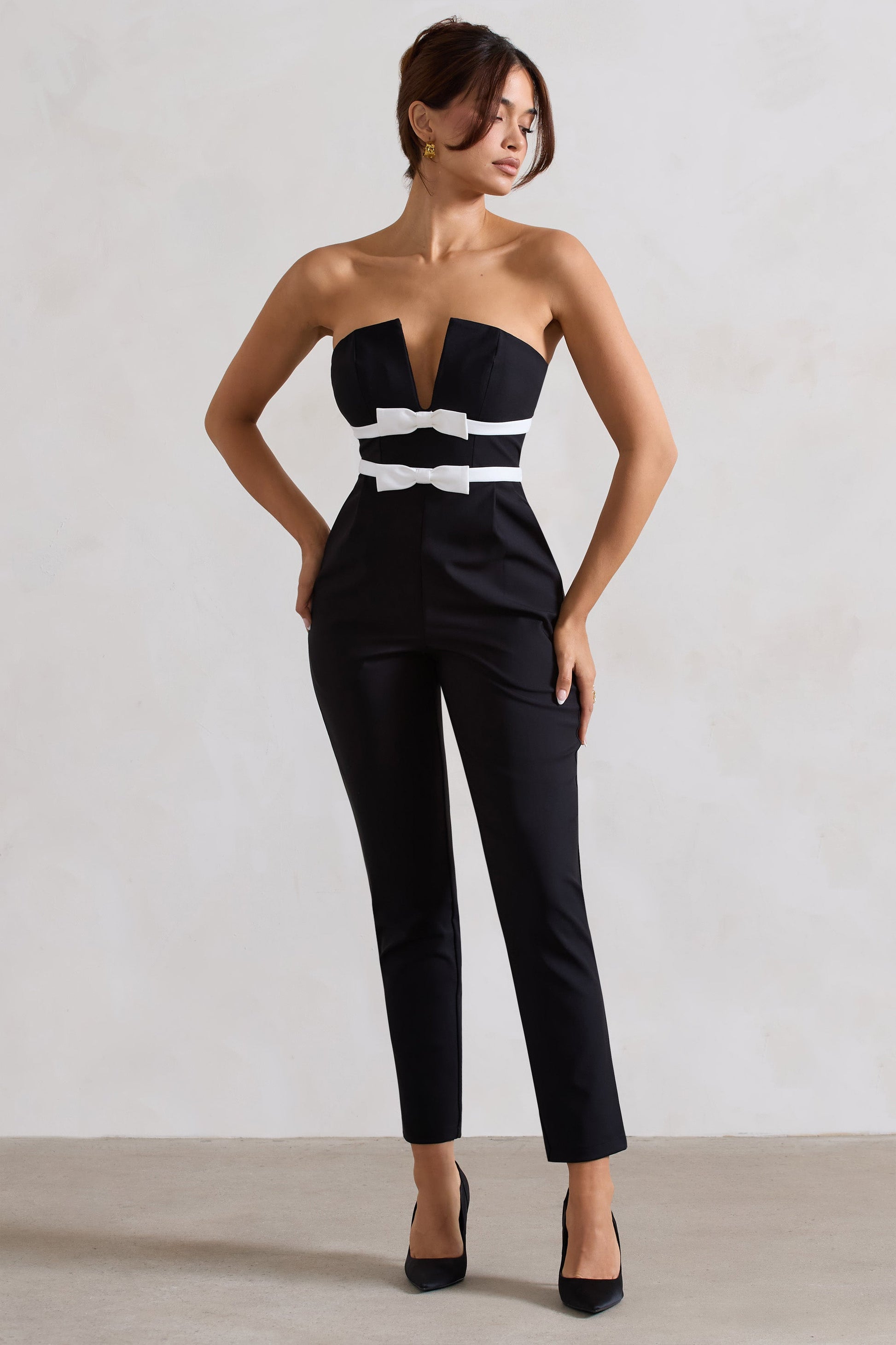 Casta | Black Strapless Tailored Straight-Leg Jumpsuit With Bows