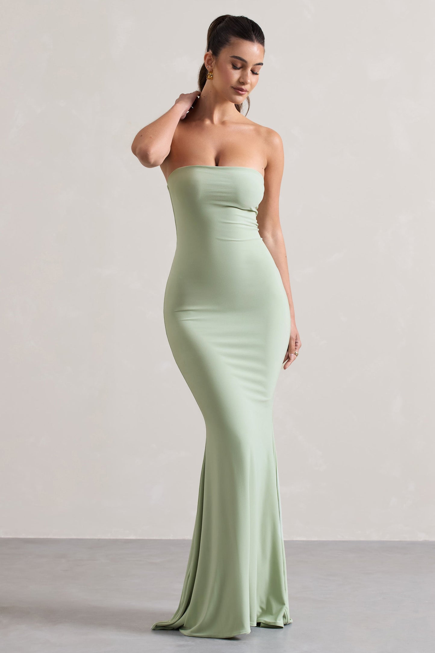 Set your sights on Ceremony, the ultimate wedding guest dress. This pale green maxi is crafted in our premium stretch jersey and showcases a minimalistic silhouette. Ceremony boasts an elegant strapless neckline and flatters your curves. Pair this dress with some simple silver accents and strappy sandals for a look of understated glamour.