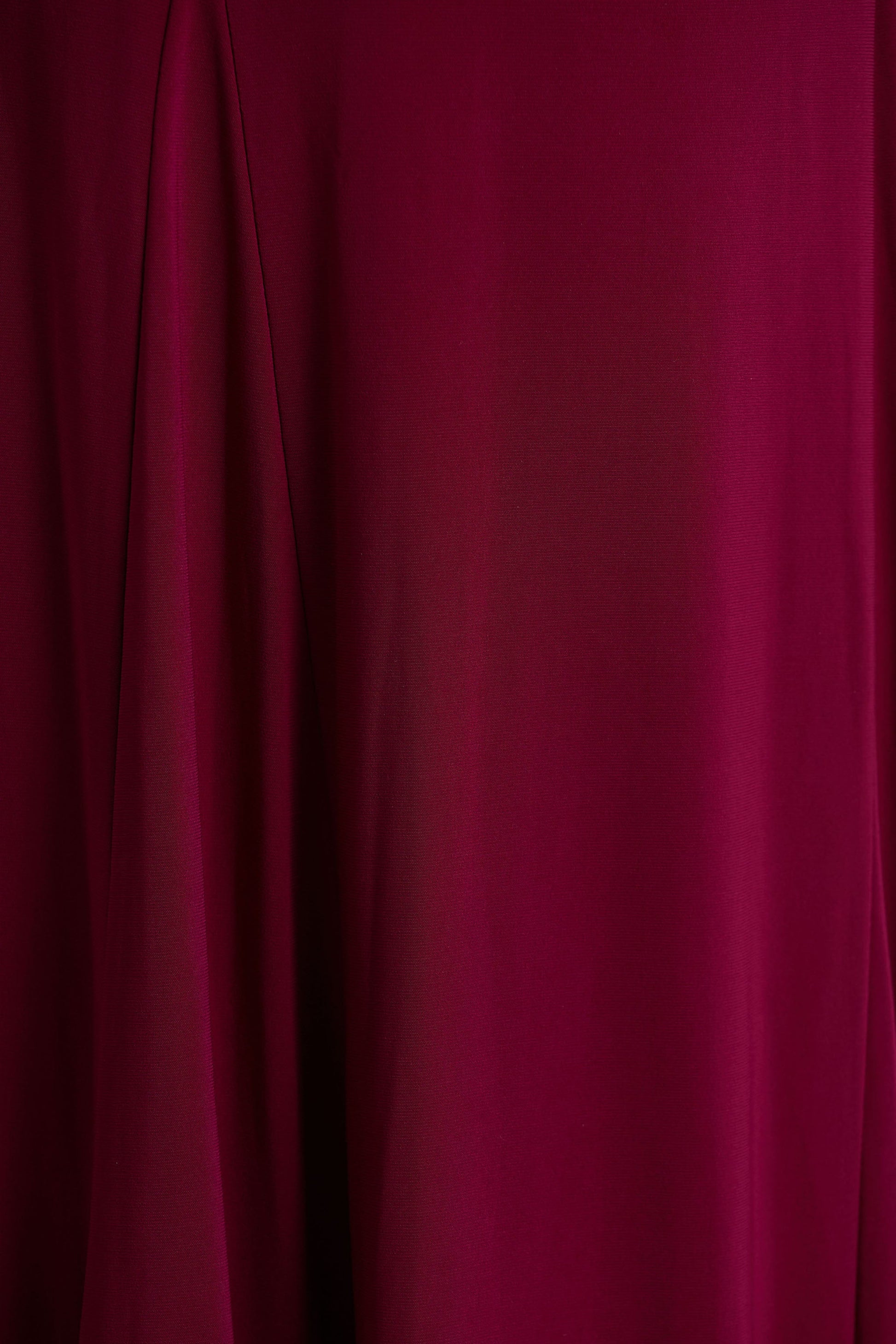 Cilla | Burgundy Bardot-Neck Maxi Dress With Ruched Detailing