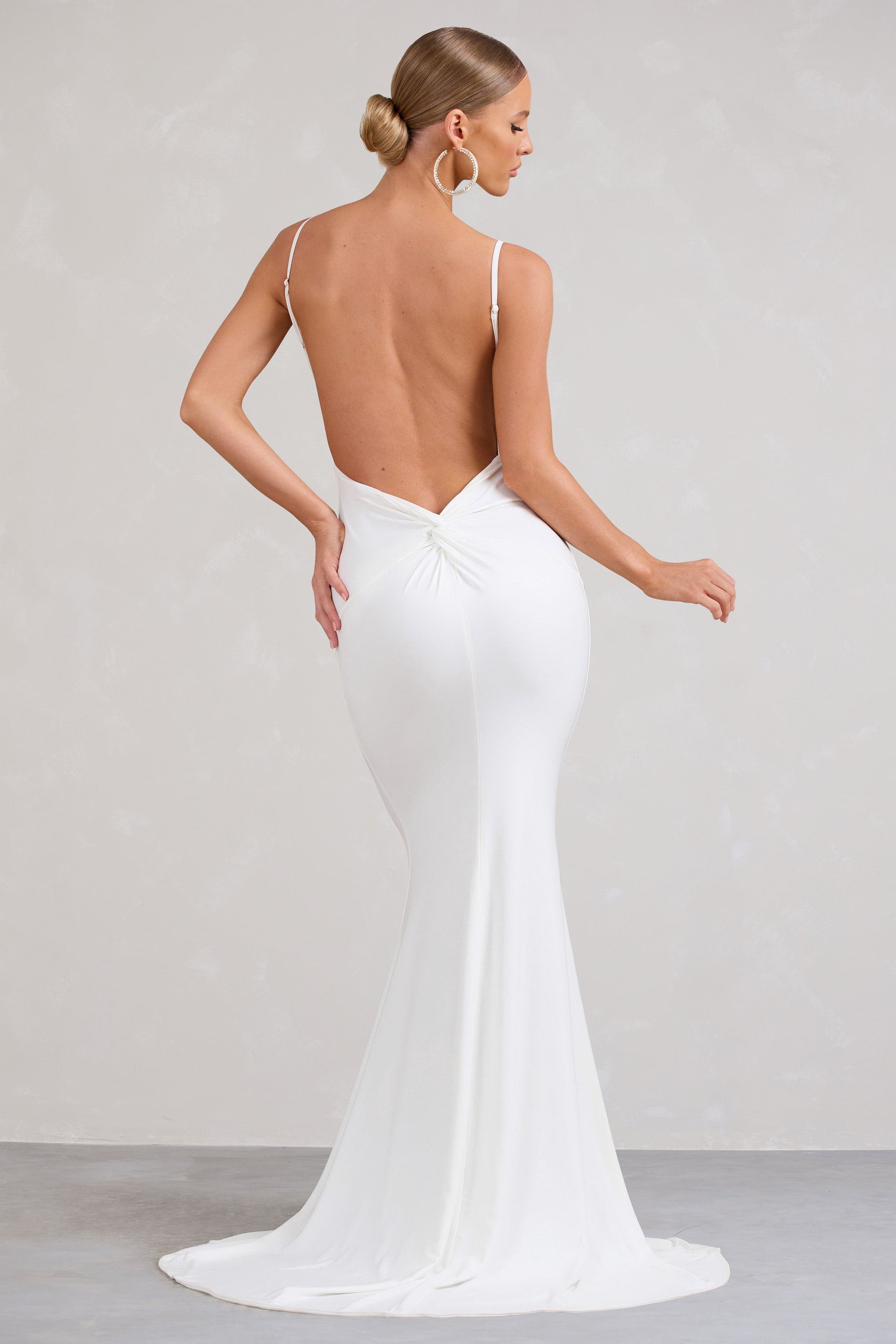 Endless Love | White Backless Knot Detail Fishtail Maxi Dress