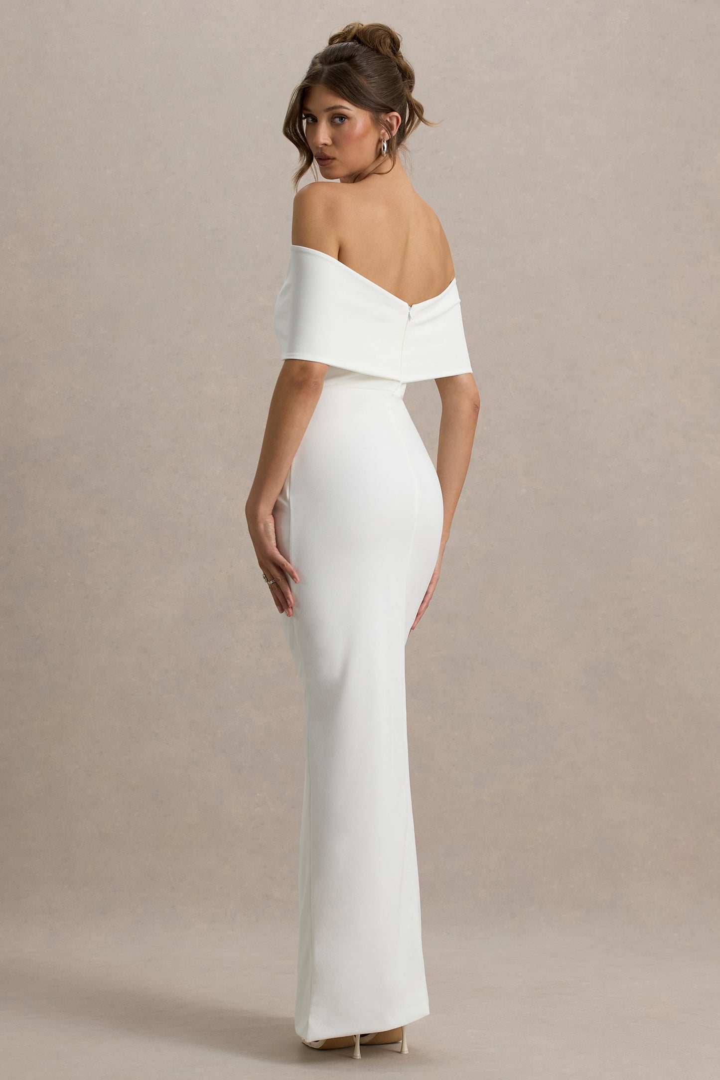 Eva | White Bardot Bow Detail Maxi Dress With Thigh Split