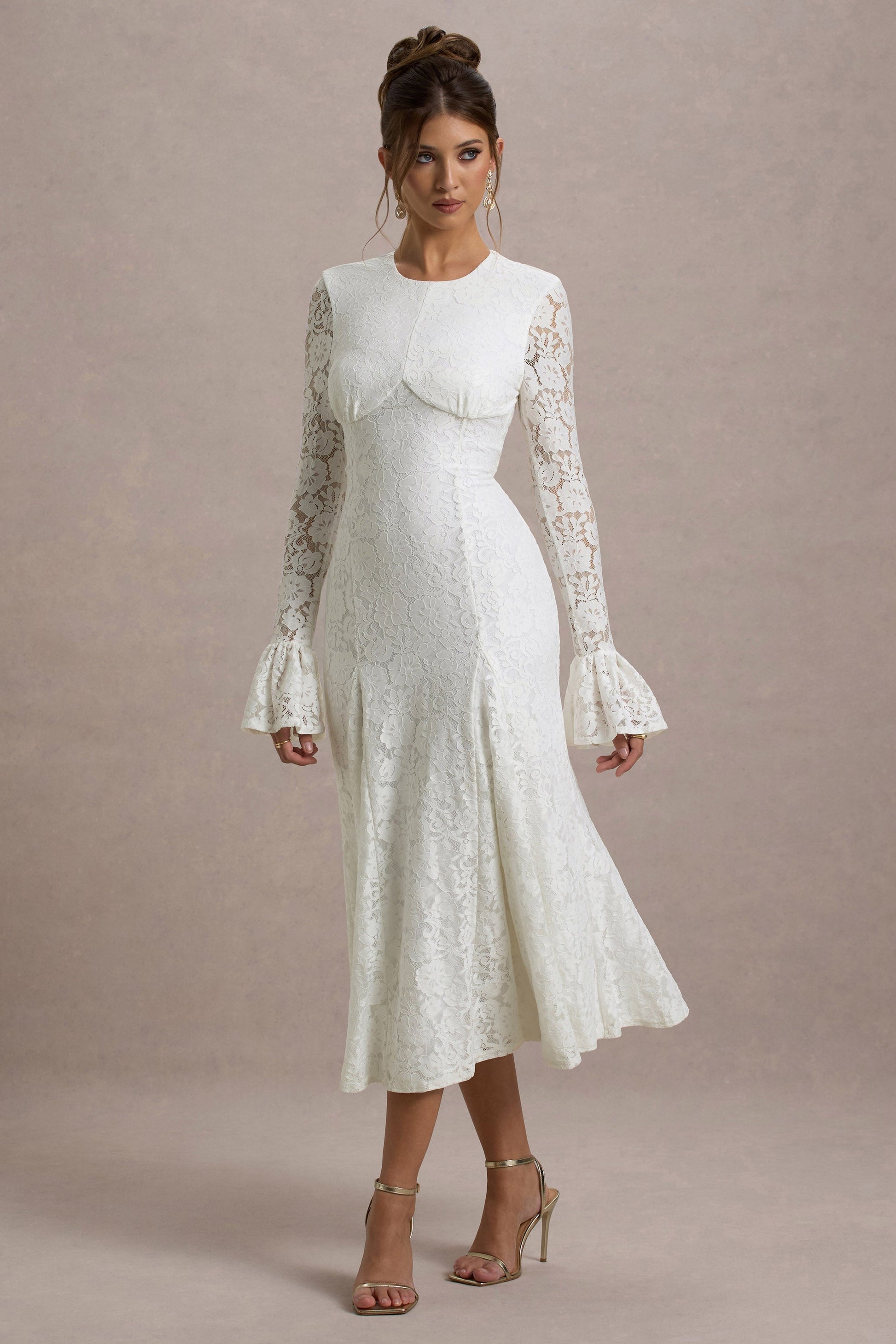 For Life | Cream Lace Long-Sleeve Midi Dress