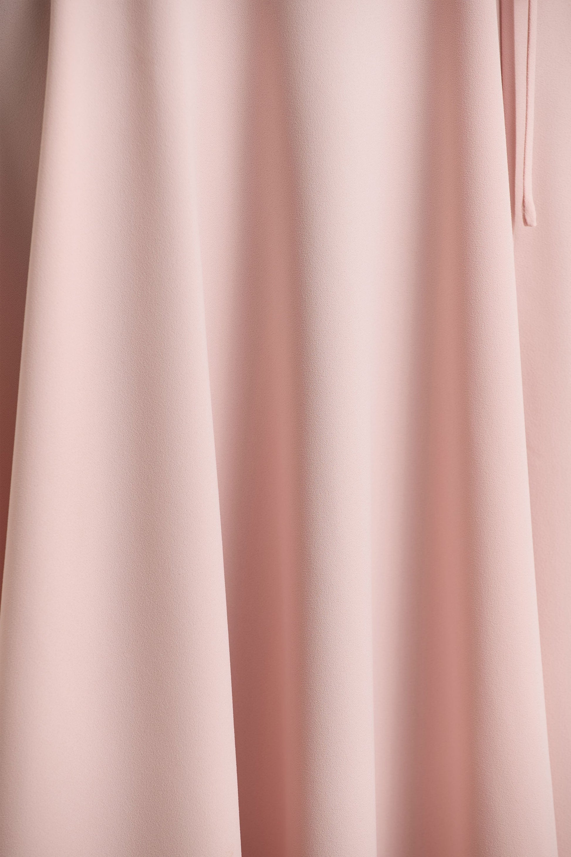 Softly sculpted and undeniably feminine, Julietta is made for modern romance. Crafted from our premium crepe in a delicate baby pink hue, this maxi dress offers a figure-flattering fit with a chic, elegant finish. The asymmetric neckline is elevated with an adjustable cami strap on one side and a statement bow sleeve on the other, creating a beautifully balanced silhouette. Complete with ruched detailing that flatters your figure, while a front-high split and open back add a touch of drama with every step. Style with dainty jewellery and sleek heels for a stand-out look.