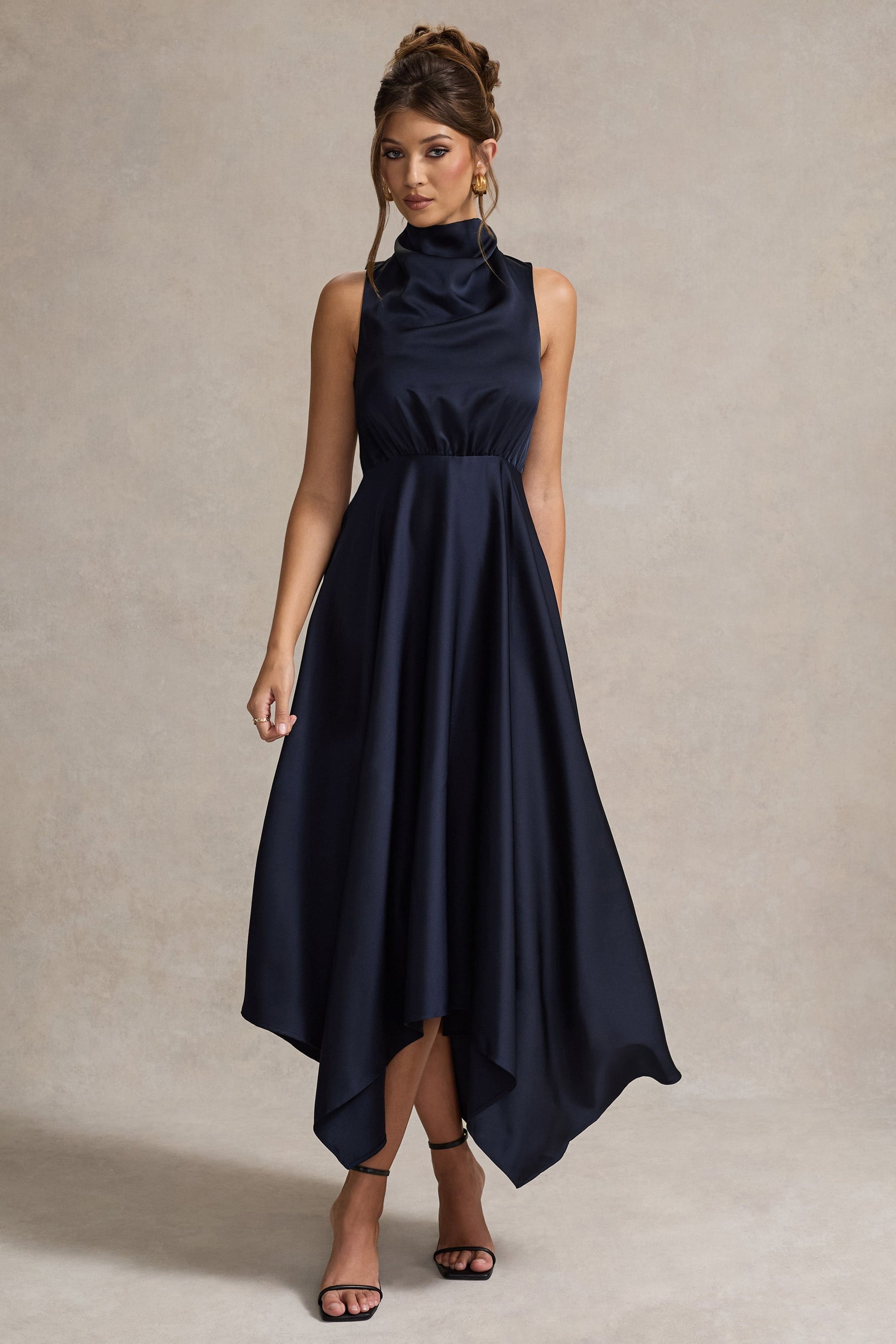 Kerri | Navy Satin Cowl-Neck Maxi Dress
