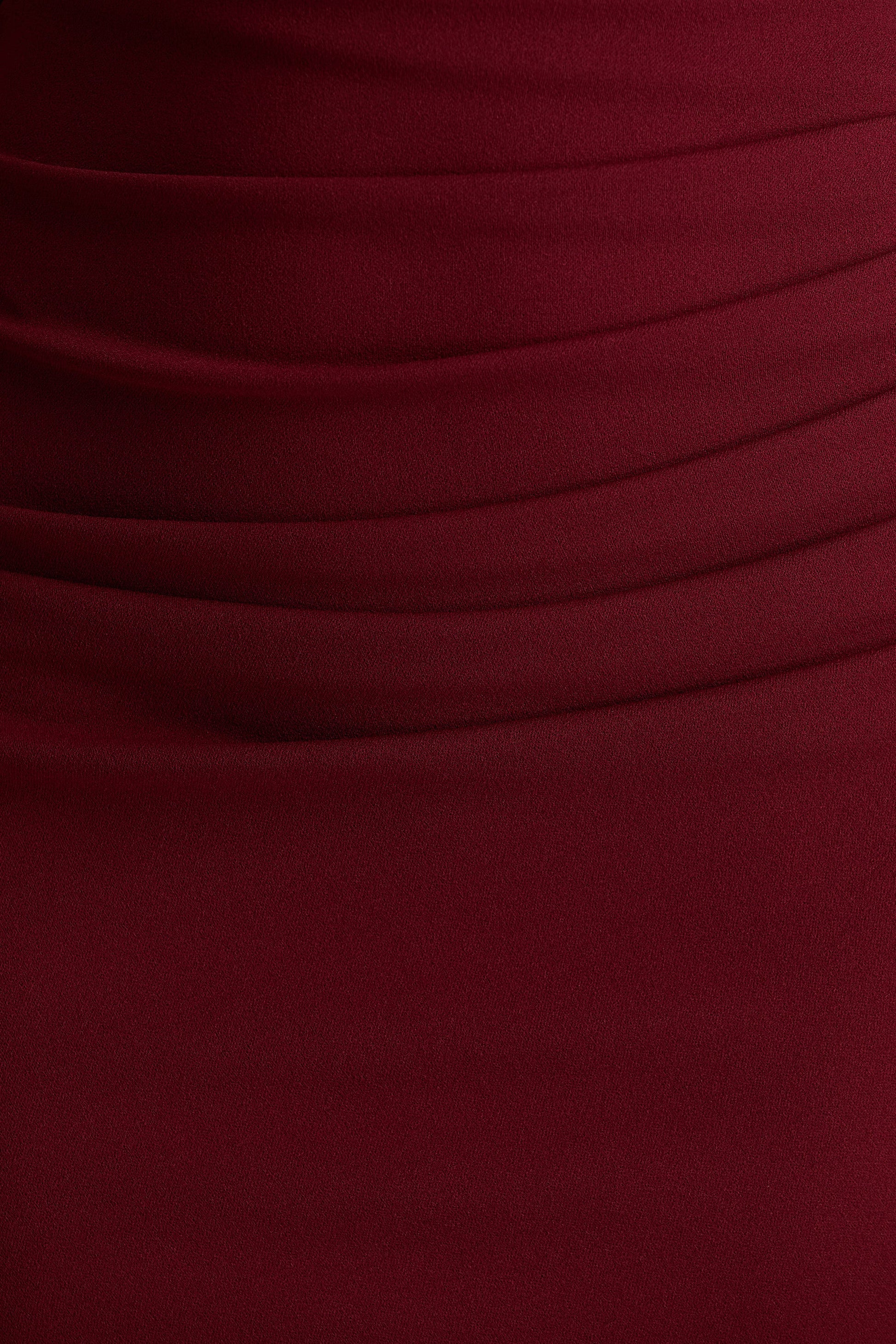 Introducing Leah, a striking piece designed to exude confidence and sophistication. Crafted from our sculpting burgundy premium scuba crepe, this sleek midi silhouette is both flattering and refined. The asymmetric neckline and dramatic cape sleeve create a powerful, feminine look, while the centre-back split adds ease of movement with a sultry touch. Leah is elegance with an edge, perfect for any occasion that calls for impact.