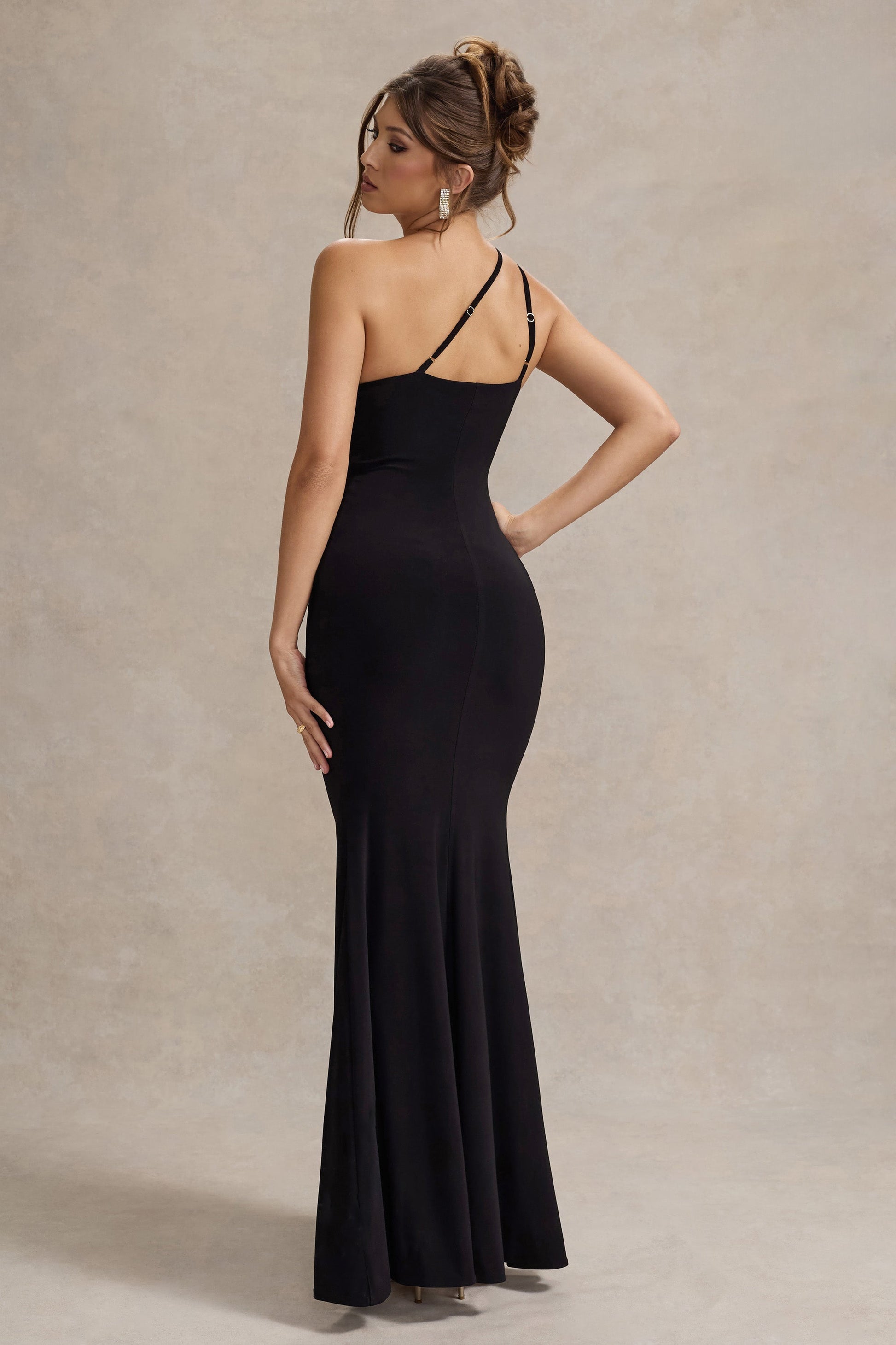 Captivate from all angles in Neroli, our sultry black maxi dress. Arriving in our premium stretch jersey, this asymmetric piece boasts adjustable cami straps, a sculptural twisted front and contemporary centre split. Get event ready by teaming yours with some strappy stilettos like Pluto.