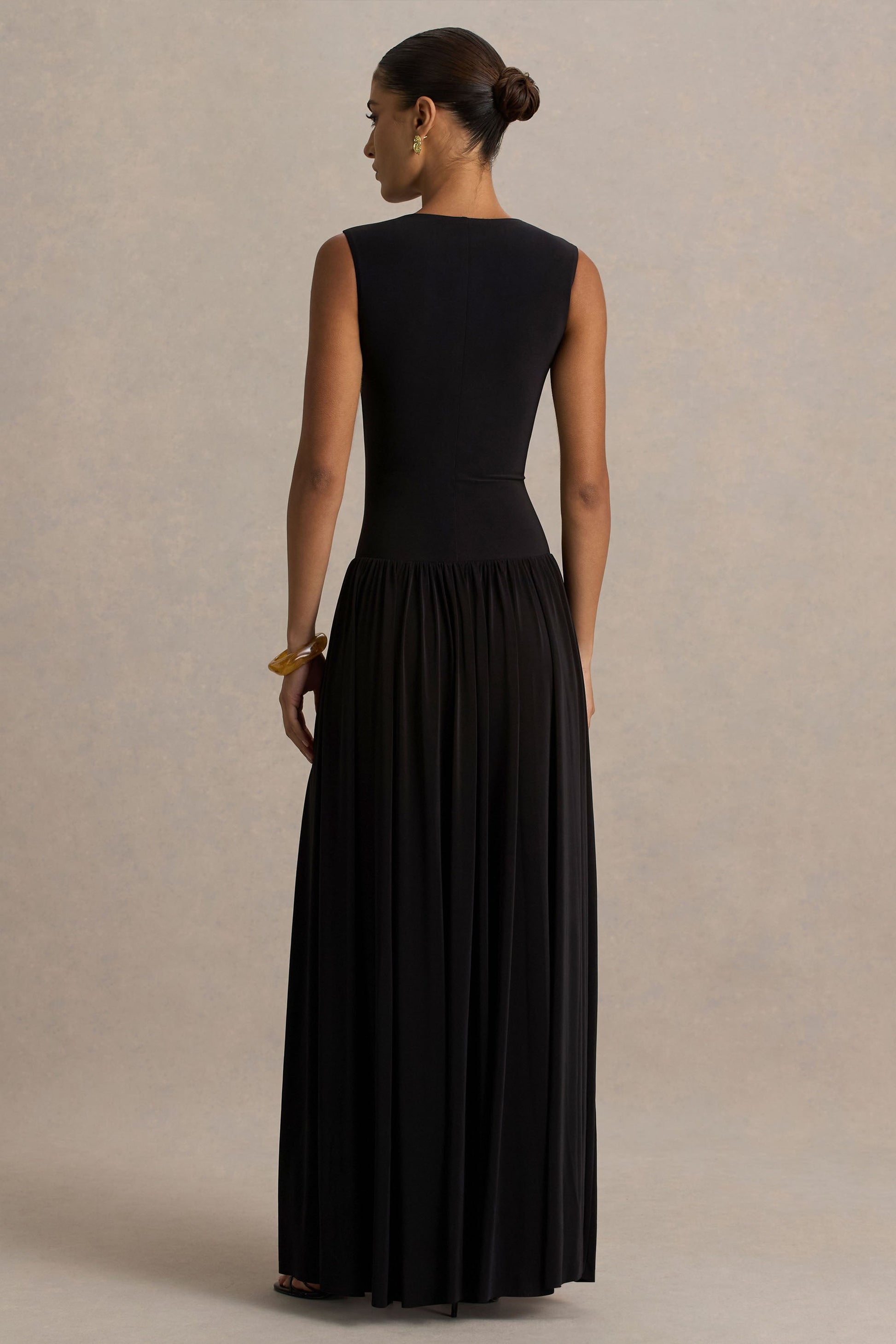 Embrace understated glamour in Rosalita, where simplicity meets striking sophistication. Crafted from our premium black stretch jersey in a chic, floor-skimming maxi length, it smooths over the body for a flawless fit. The crew neckline and sleeveless design create a clean, modern silhouette, while the drop waist adds a subtle nod to timeless elegance. Perfect for refined soirées, evening events, or any occasion that calls for glamour, Rosalita is a masterclass in minimalism with impact.