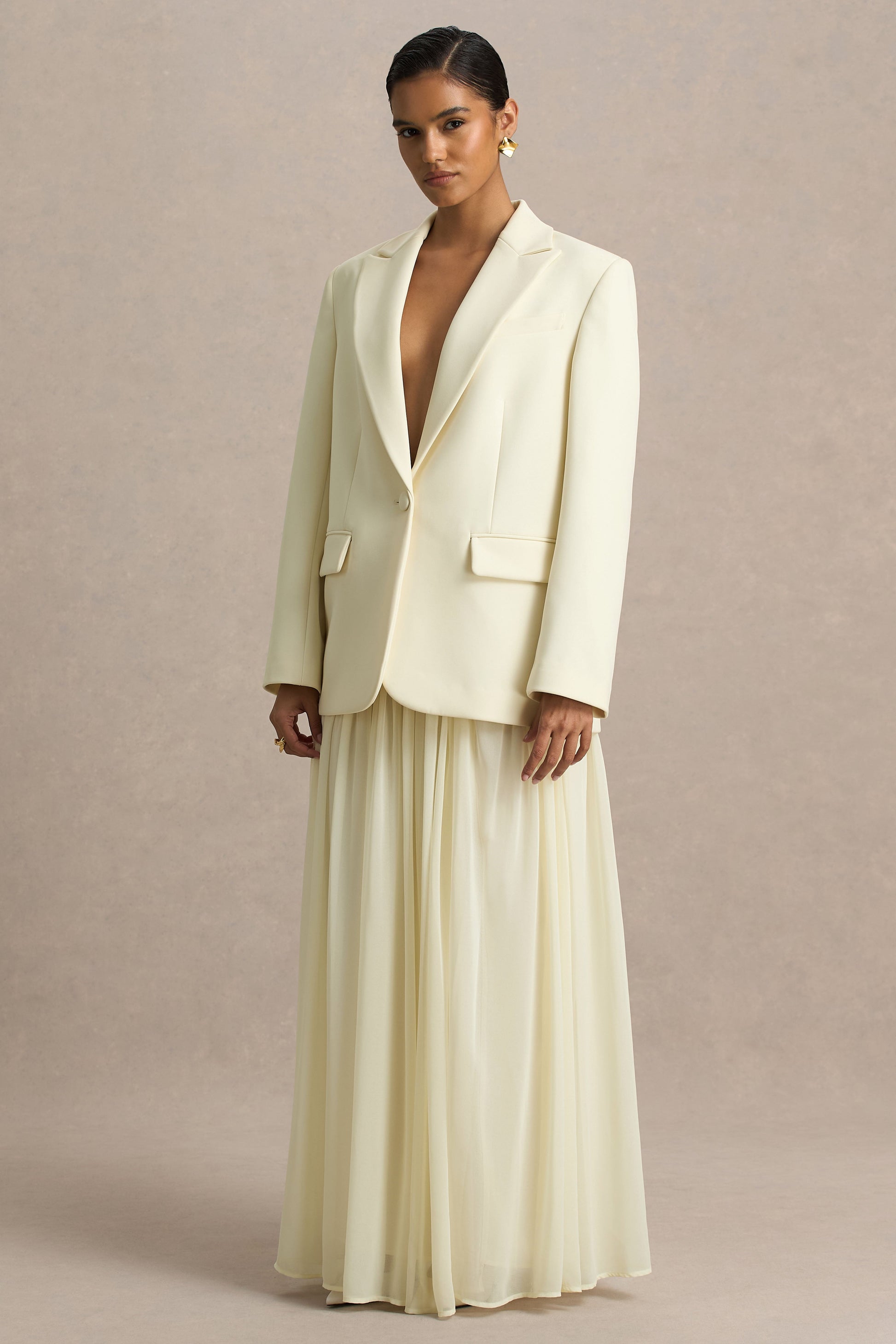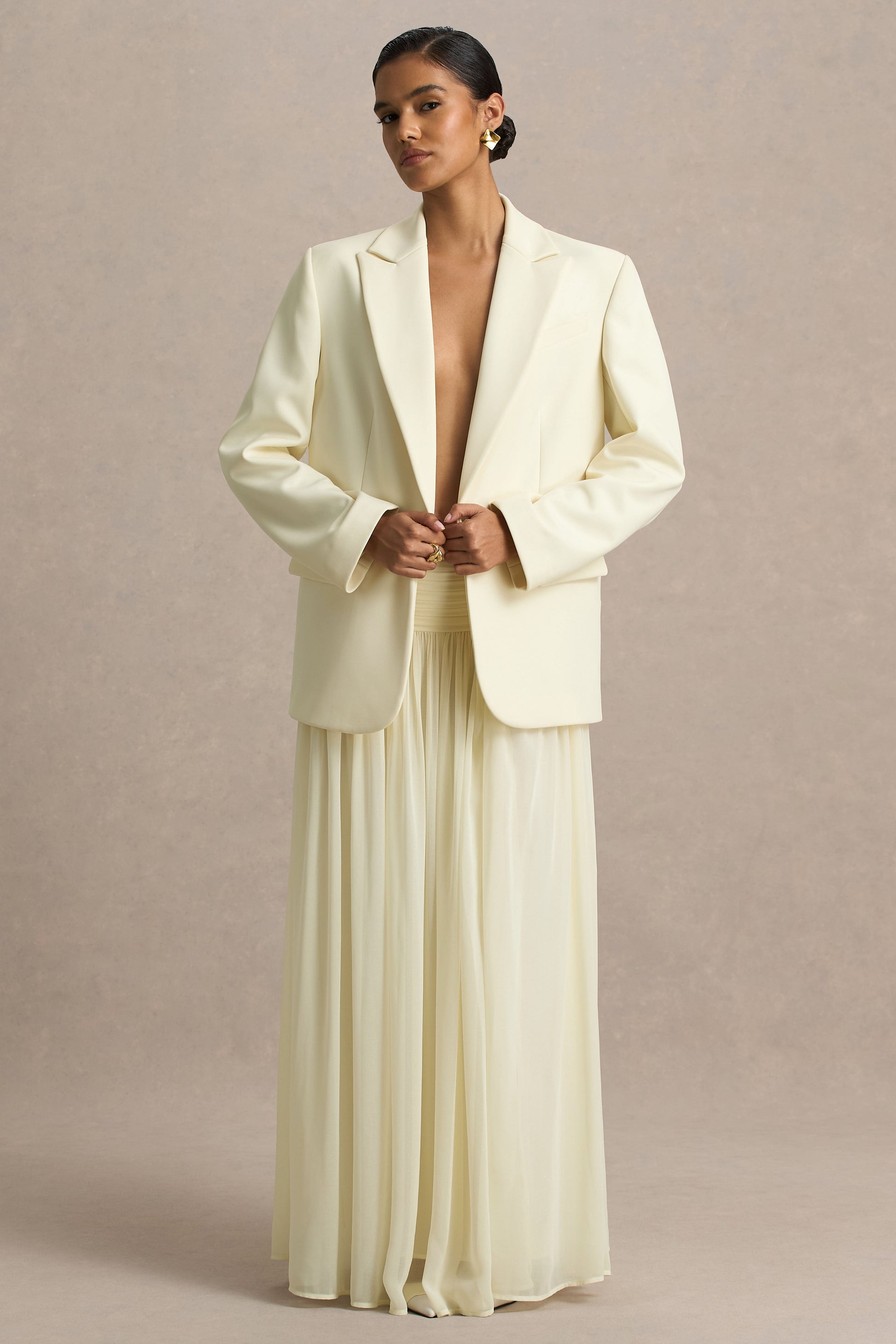 Spencer | Cream Chiffon Pleated Maxi Skirt