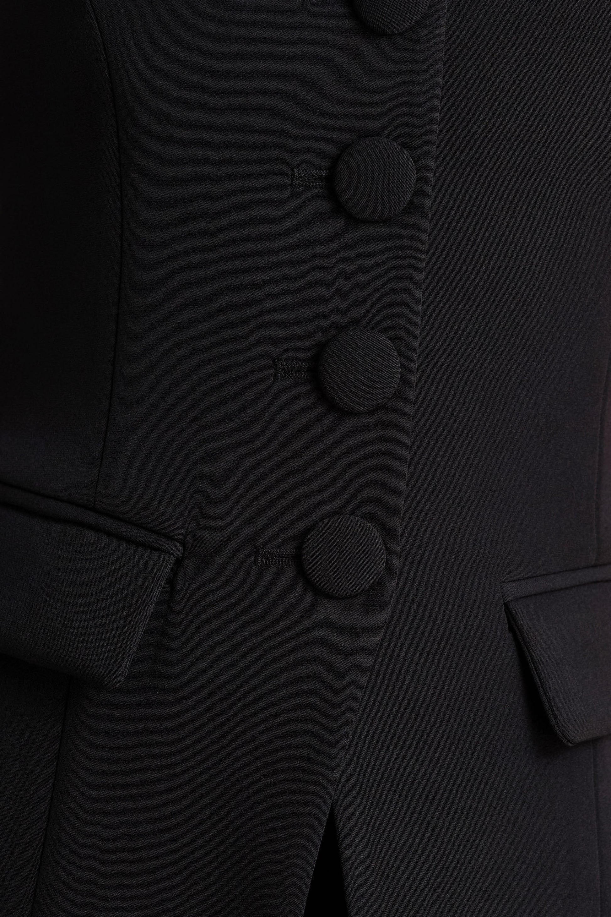 This seasons must have top Tecla has arrived. Cut in our premium stretch crepe in a timeless shade of black, this top is the perfect addition to your wadrobe. Adorned with fine details such as a plunge neckline with an adjustable neck strap for the perfect fit and self covered buttons, this is the ultimate elevated classic. With endless possibilities to dress up or down, Tecla will see you through all occasions this season.