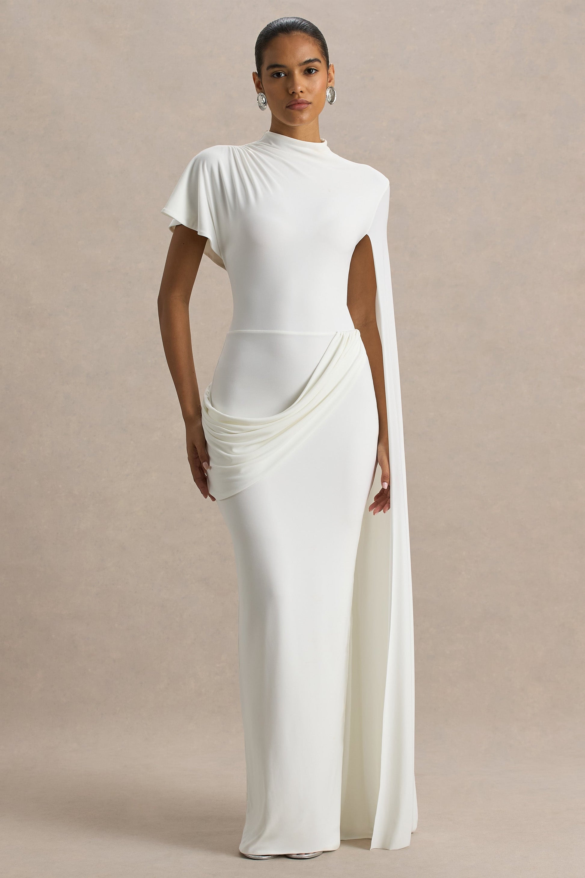 Tropic | White High-Neck Maxi With Long Cape Sleeve