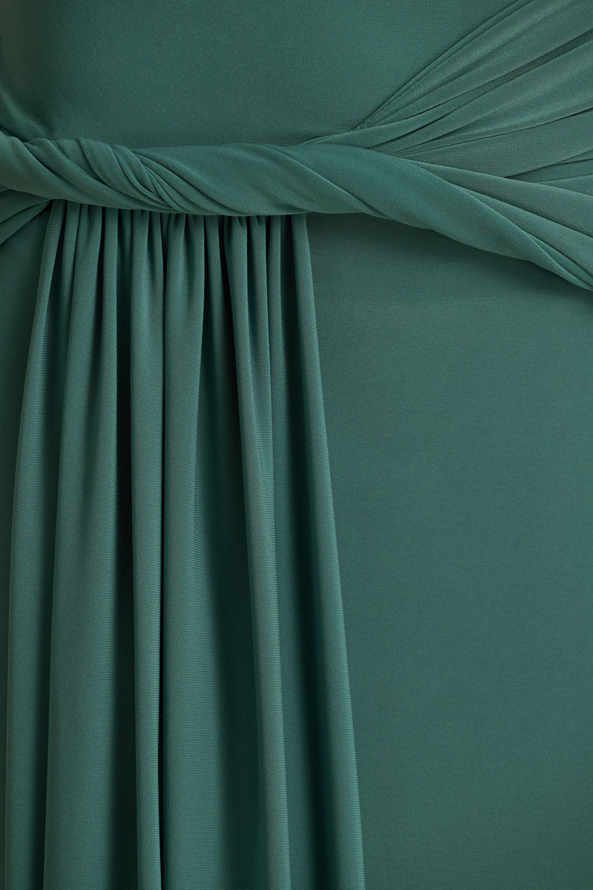 Tulisa | Green Asymmetric-Neck Maxi Dress With Twist Sleeves And Ruched Detailing
