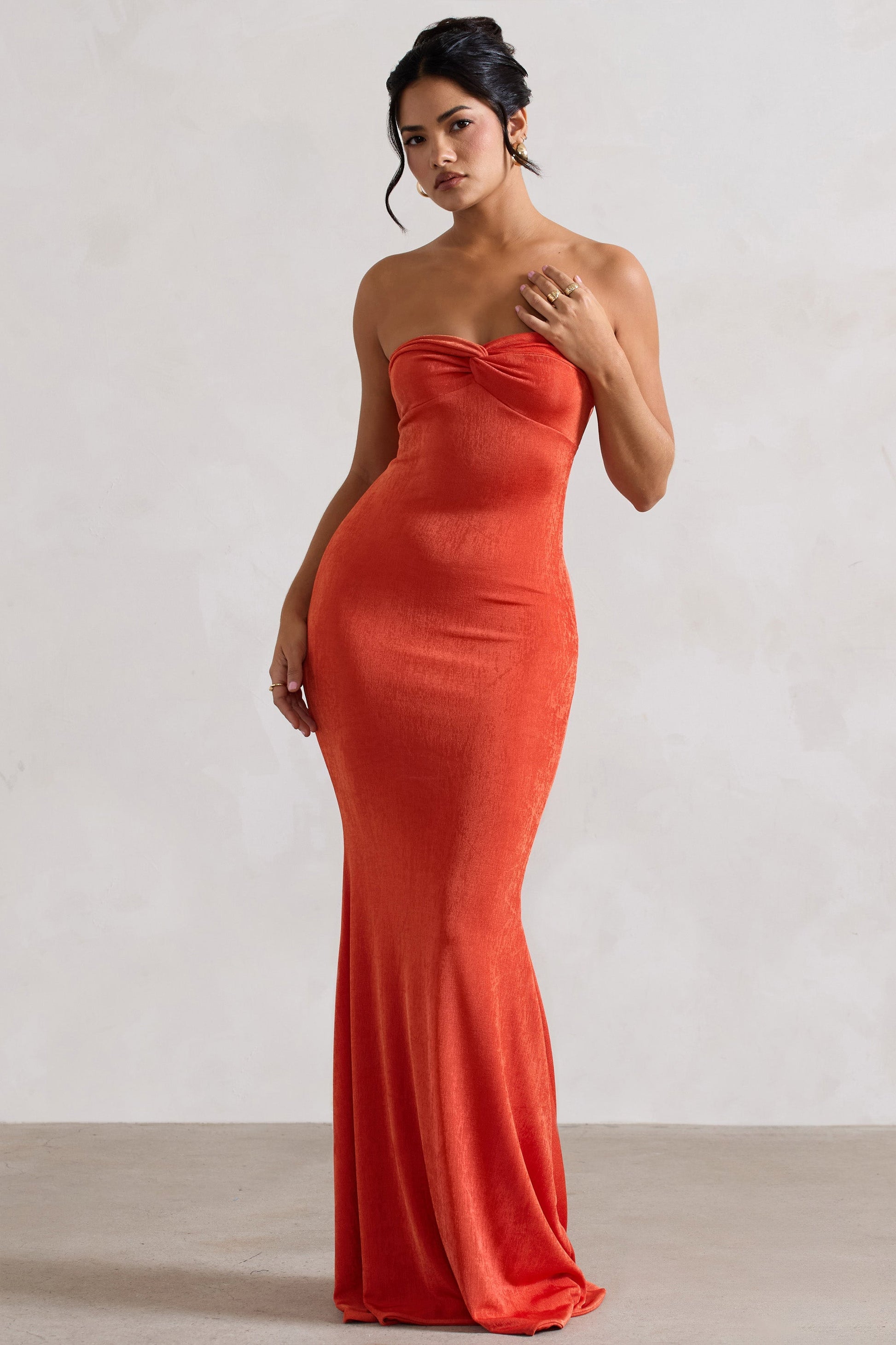 Wild Fantasy | Orange Bandeau Sweetheart Maxi Dress